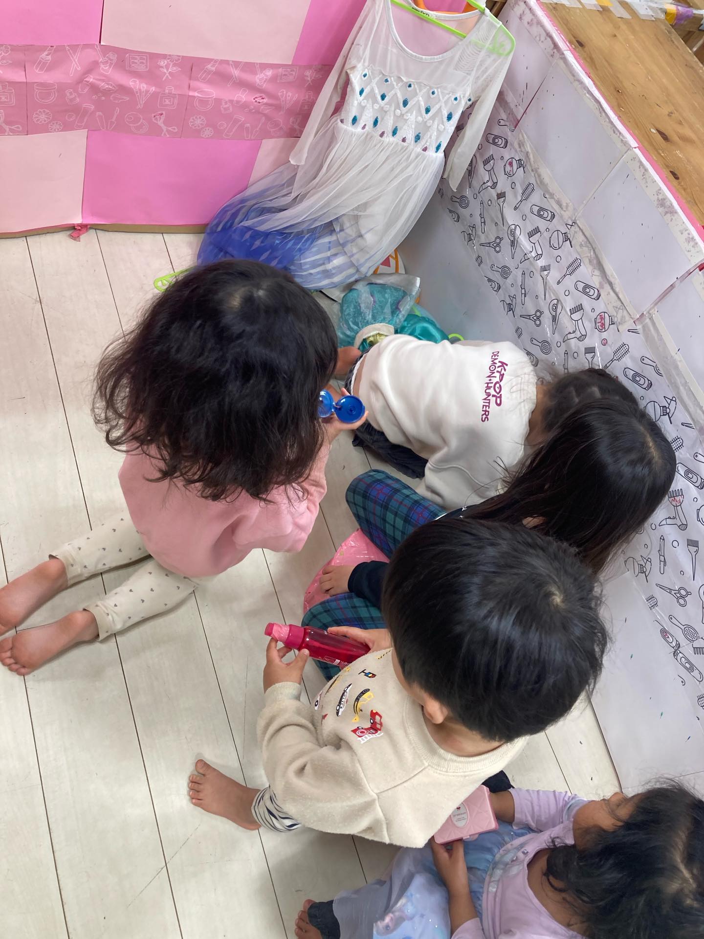 床屋さんごっこ、メイクごっこ、ドレスアップができるコーナーです。