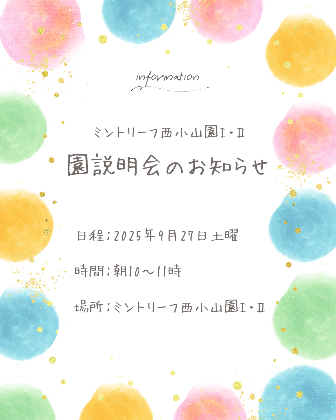 この度、私たちミントリーフ西小山園Ⅰ・Ⅱでは2026年4月入園を検討中の方向けに