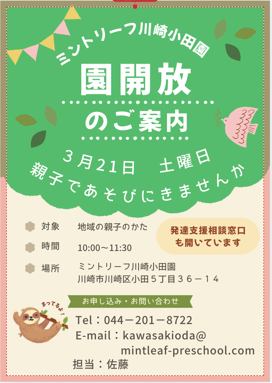 ぜひお子様と公園に遊びに行くような気持ちでお気軽に当園へお越しください👦👧