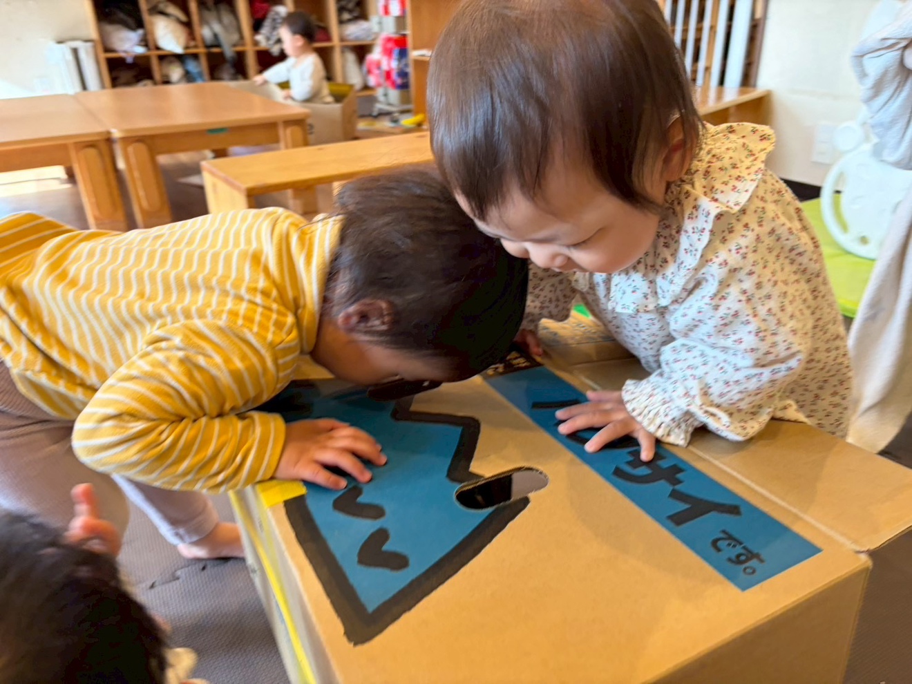 子どもたちは物を落としり、投げたり、⾳を出したり、つぶしたりするなど実際に感じる感覚に興味があります。